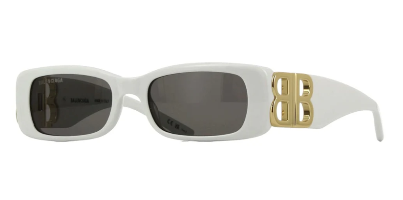 Balenciaga BB0096S 011 kadın güneş gözlüğü, beyaz asetat çerçevesi, gri camları ve saplardaki altın BB logosuyla dikkat çeken dikdörtgen bir tasarımdır. Dar ve uzun form, yüz hatlarını modern bir çerçeveyle vurgulayarak 80’ler esintili, iddialı bir stil sunar. Asetat gövde, günlük kullanımda hem tok bir görünüm hem de konforlu bir ağırlık dengesi sağlar.