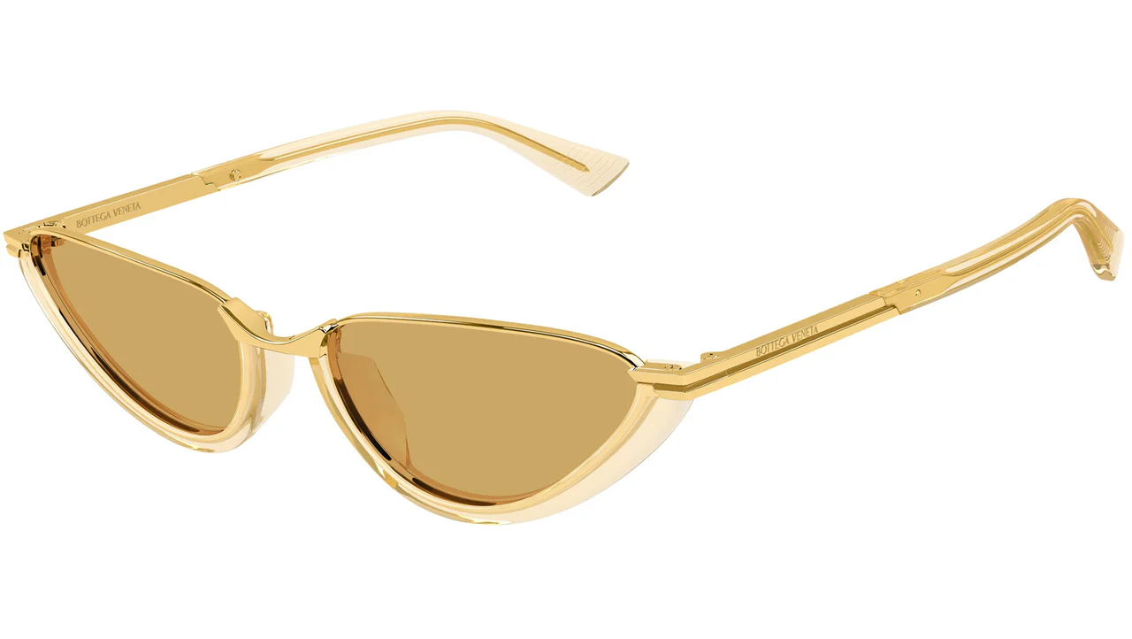 Bottega Veneta BV1346S 003: Markanın "Ribbon" koleksiyonuna ait olan bu model, 003 renk koduyla gün ışığının enerjisini ve şeffaf materyalin hafifliğini bir araya getirir. Modern bir kedi gözü (cat-eye) formunu "modern classic" bir tavırla yeniden yorumlayan bu kadın güneş gözlüğü, Bottega Veneta'nın minimalist lüks anlayışını transparan bir estetikle sunar. Sap kısımlarında yer alan karakteristik gümüş renkli şerit detayları, tasarıma markanın imza niteliğindeki rafine dokunuşunu katar. Teknik Tasarım ve Ölçüler