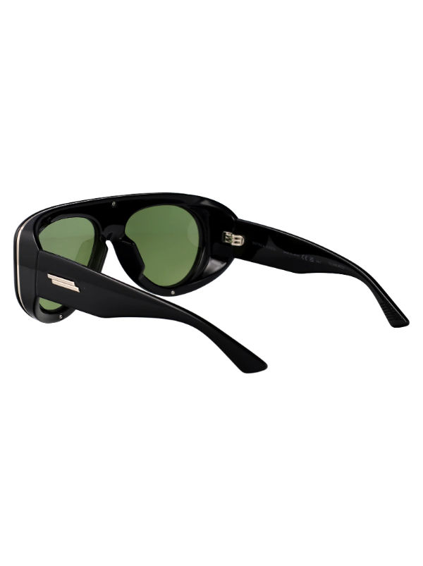 Bottega Veneta BV1362S 006 Siyah Yeşil Unisex güneş gözlüğü, Ribbon çizgisinde yer alan oversize pilot formu ve sade çizgileriyle modern ve güçlü bir lüks güneş gözlüğüdür. Parlak siyah (shiny black) tam çerçeve ile solid yeşil bio?nylon lenslerin birlikteliği, hem şehir stilinde hem de seyahat kombinlerinde zamansız ve sofistike bir görünüm sunar. Oversize pilot siluet, yumuşak köşeli geniş lensleriyle yüz hatlarını dengeli şekilde çerçeveleyerek unisex kullanıcılar için karakterli bir stil beyanı oluşturur.