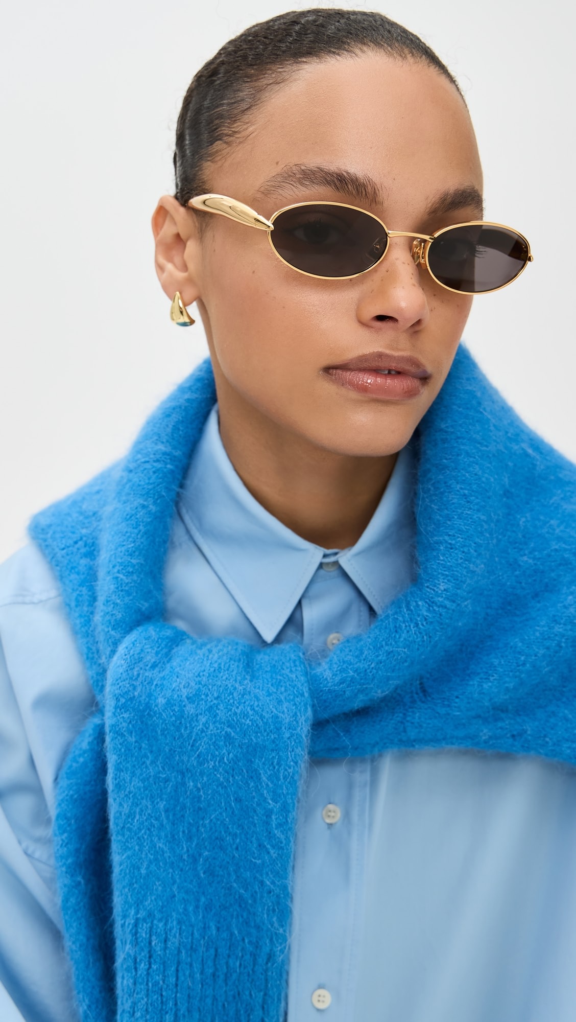 Metal çerçeve ve ince profil sayesinde model, asetat çerçevelere göre belirgin şekilde daha hafif hissettirir; bu da uzun süreli kullanımda konforu artırır. Oval form, özellikle köşeli ve kare yüzlerde hatları yumuşatır; altın gövde ve füme lens kombinasyonu ise hem gündüz casual stillerde hem de akşam daha şık kombinlerde “sessiz lüks” etkisi yaratır.