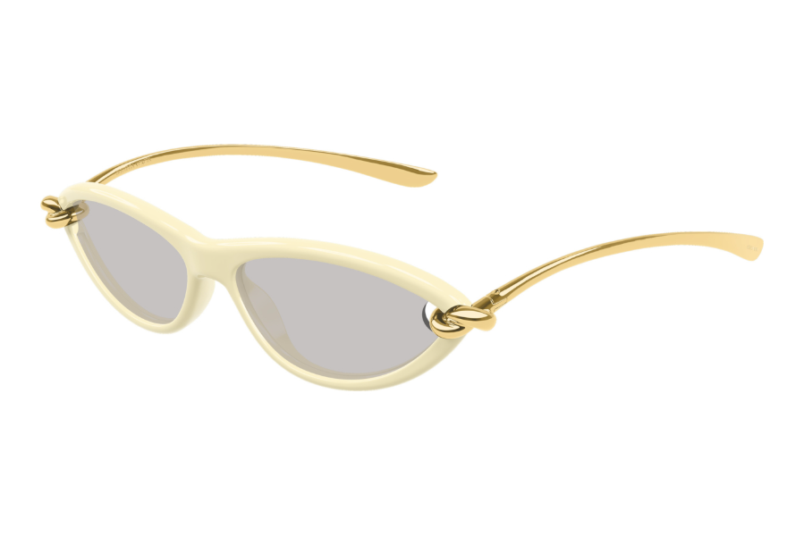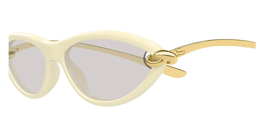 Bottega Veneta BV1390S 007: 1966'dan bu yana İtalya'nın sessiz lüks felsefesinin temsilcisi Bottega Veneta, Signature Icons koleksiyonunda BV1390S modeliyle cat-eye formunu en modern ve en zarif yorumuyla sunmaktadır. 007 Butter Ivory rengi koleksiyonun en feminen ve en rafine kombinasyonu: fildişinin sıcak krem tonu açık grinin soğuk nötr tonuyla beklenmedik bir zarafetle buluşmaktadır.