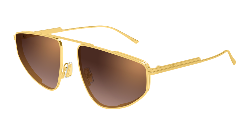 Bottega Veneta BV1466S 004: 1966'dan bu yana İtalya'nın sessiz lüks felsefesinin temsilcisi Bottega Veneta, Ribbon koleksiyonunda BV1466S modeliyle pilot formunu en feminen ve en altın yorumuyla sunmaktadır. 004 kombinasyonunun çift degrade lensi — sıcak kahverengiden antika pembeye geçen ton, arkasında rose gold elektrik flash kaplama — koleksiyonun en sofistike ve en özgün lens işçiliğini barındırmaktadır.