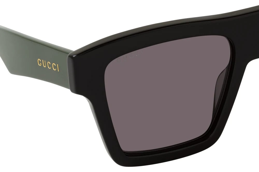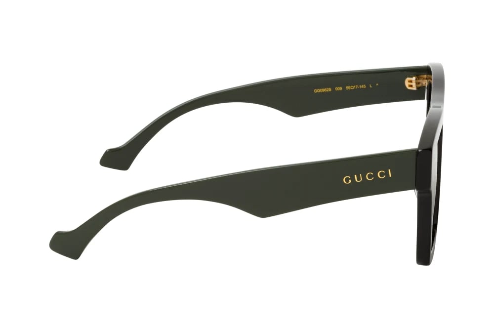 Dikdortgen-kare flat-top forma sahip cerceve, yuz hatlarini modern ve net bir sekilde cerceveler. 55 mm lens genisligi genis bir gorus acisi verirken, 17 mm kopru ve 145 mm sap uzunlugu gun boyu dengeli ve konforlu bir kullanim saglar. Siyah cerceve uzerindeki yesil detaylar, Gucci’nin ikonik renk paletini modern bir yorumla gozluk tasarimina tasir.?