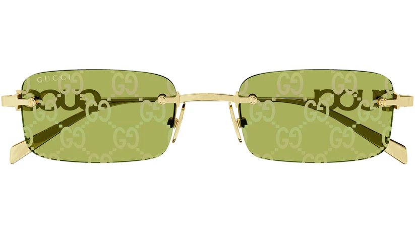 Gucci GG1808S 002: 1921'den bu yana İtalyan lüksünün en ikonik temsilcilerinden Gucci, Lettering koleksiyonunun GG1808S modelinde 002 renk koduyla sarı altın metalin ısıl ve görkemli parlaklığını lensin en cesur ve en özgün Gucci ifadesiyle buluşturur. Parlak sarı altın çerçevenin görkemli ısıl tonu ile yeşil lensin üzerindeki iris/gökkuşağı flash Guccissima GG desen baskısının görsel zenginliği bir araya geldiğinde şakaktaki 3D tridimensional Gucci lettering logosu bu iki katmanlı lüks anlatıyı koleksiyonun en ikonik ve en görsel açıdan çarpıcı maskülen ifadesine dönüştürmektedir.