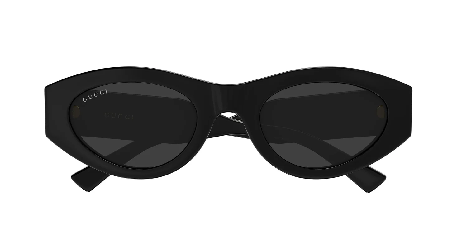 Malzeme ve Lens Parlak siyah asetat hafif, hipoalerjenik ve dayanıklı. Gri lens %100 UV koruma — siyah + gri monokromu şakaktaki altın GG monogram plakanın parlaklığını tam ön plana taşır; kontrast net ve güçlü.