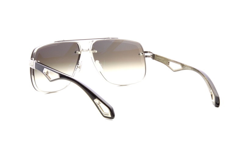 Teknik Tasarım ve Ölçüler The King II, ayrıntılı "floating lens" konstrüksiyonu ve Maybach kabartmalı üst barıyla serinin en etkileyici modelidir. Cam genişliği 63 mm, köprü genişliği 12 mm ve şakak uzunluğu 145 mm olarak tasarlanan bu erkek modeli, geniş yüz hatlarına olağanüstü bir çerçeve sunar. Çerçeve vidası başlarındaki minyatür Maybach Double-M logoları ile laserlı gravür lens detayları modeli anında tanınır kılar. Brogue deseni ve "Flowing Lines" kabartması gerçek bir Maybach tutkununun hemen fark edeceği gizli tasarım detaylarıdır. Otomobil iç tasarımından ilham alan açık kesimli şakak yapısı, aerodinamik ve modern bir çizgi sunar.