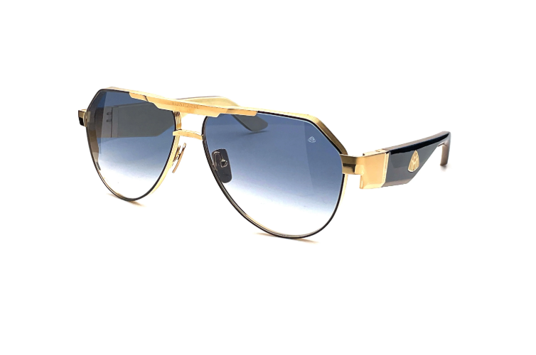62?14?145 ölçü seti, 22K altın kaplama titanyum–ahşap hibrit gövde ve Zeiss CR?39 lenslerle The King III MG/B?WDX?Z60, ağırlığına rağmen dengeli bir dağılım ve uzun süreli konfor hedefler. Oversize aviator form, altın gövde ve mavi degrade cam kombinasyonu, hem günlük şehir stilinde hem de özel davetlerde güçlü statü ve zanaatkârlık vurgusu yapan, vitrin niteliğinde bir Maybach deneyimi sunar.