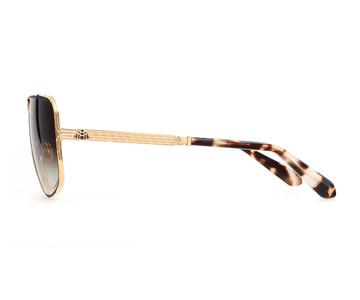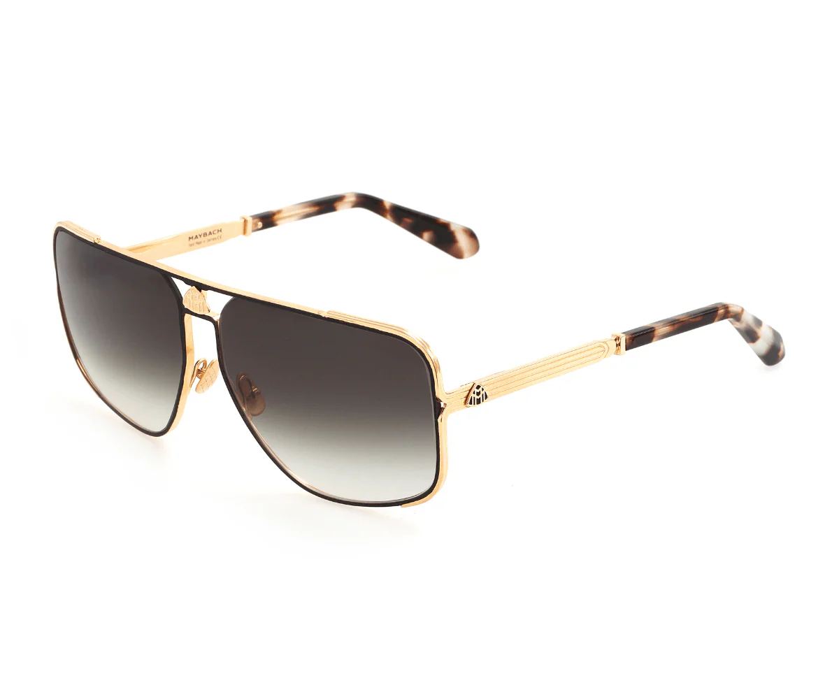 Maybach The Presenter I CHG/B-AAU-Z35: Almanya'nın efsanevi otomobil mirasından ilham alan Maybach Eyewear'ın The Presenter I modeli, 66 mm'lik büyük cam genişliğiyle koleksiyonun en görkemli oversize çerçevelerinden birini sunar. Şampanya altın kaplama titanyumun asil sıcaklığı ile milky brown tortoise İtalyan asetatın zengin organik deseni bir arada, gözlüğü güç ve sofistikasyon arasındaki mükemmel dengeye taşır.