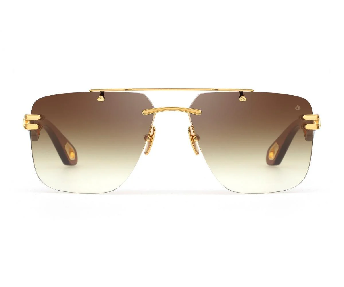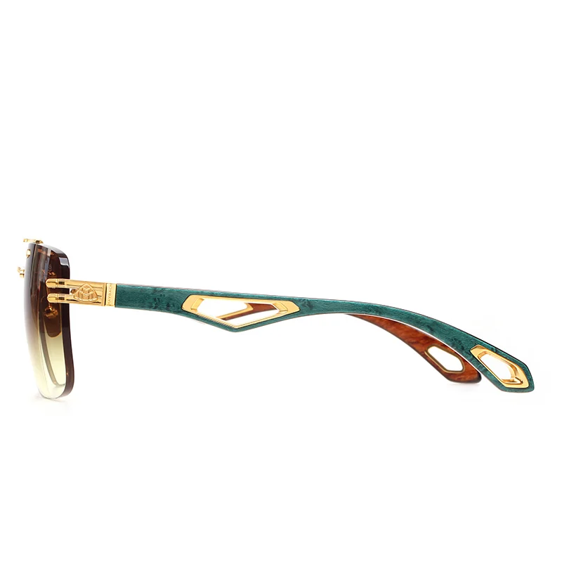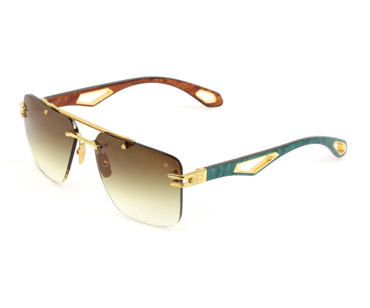Maybach The President I G-WCZ-M09: Almanya'nın efsanevi otomobil mirasından ilham alan Maybach Eyewear'ın The President I modeli, altın kaplama saf titanyum ve egzotik Turquoise BEM ile Karelian Huş Ağacı ahşaplarının doğal renk armoniasıyla gözlüğü koleksiyoncu değeri taşıyan bir kuyumculuk eserine dönüştürmektedir. G-WCZ-M09 kombinasyonu, sıcak altın metalin turkuaz-yeşil ahşap tonlarıyla buluştuğu son derece özgün ve nadir bir renk denklemidir.