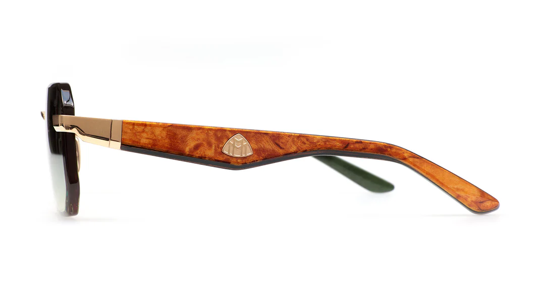 Maybach The Visionist Sun I MG-WEO-M09: Mellow gold kaplamanın sıcak altın tonu ile Dark Purple Madrone, Bubinga ve Golden Madrone'nin üç farklı egzotik ahşap tonunun nadir bir araya gelişi, The Visionist Sun I'ı Maybach koleksiyonunun en botanik ve en karmaşık ahşap paleti sunan modellerinden biri kılmaktadır. Almanya'da usta elleriyle üretilen bu geometrik rimless model, lüks güneş gözlüğünü gerçek anlamıyla giyilebilir bir sanat eserine dönüştürmektedir.