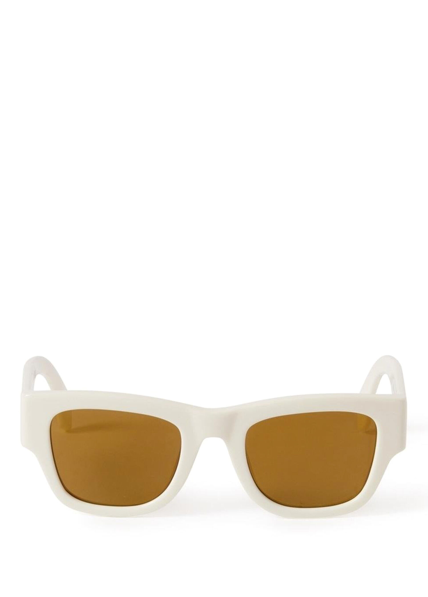 Palm Angels PERI025 0176, beyaz asetat dikdortgen formda, koyu camli unisex gunes gozlugudur. 50 ekartmanli, sokak stiline donuk cesur bir tasarim olarak konumlanir.