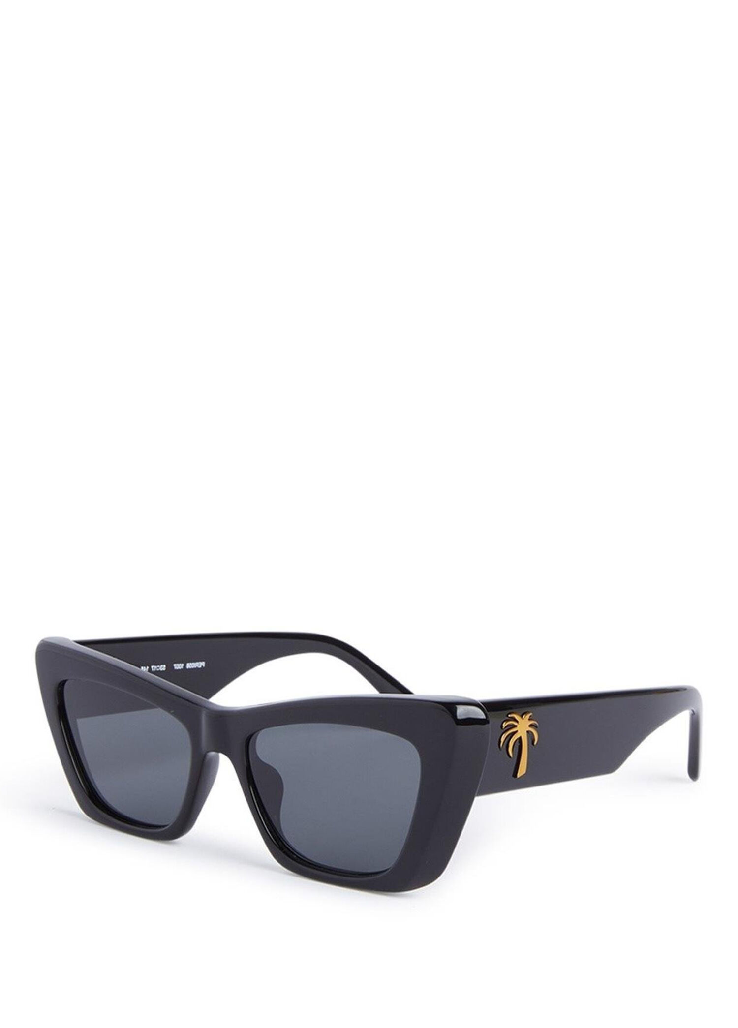 Palm Angels PERI058 1007, parlak siyah asetat cat-eye formda, gri/black camlı bir kadın güneş gözlüğüdür. Fairfield adlı model, 53–17–145 ölçülerinde ve UV korumalı lenslerle üretilmiştir.