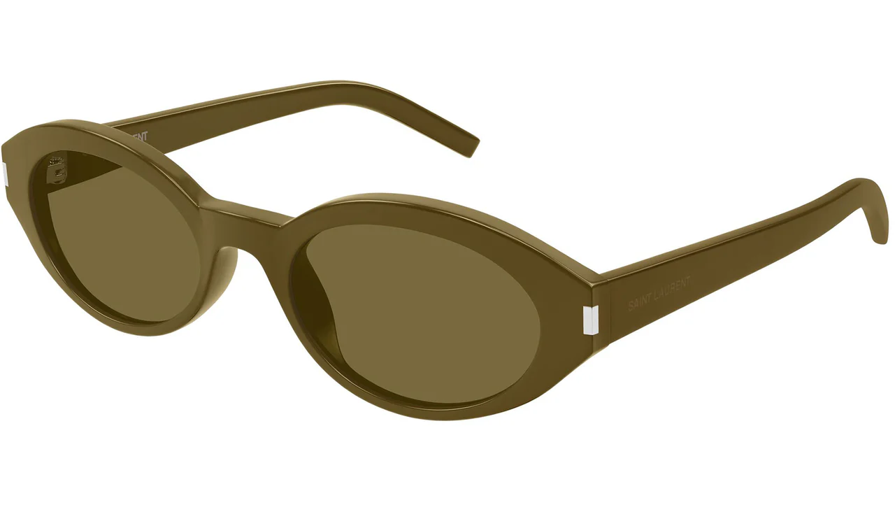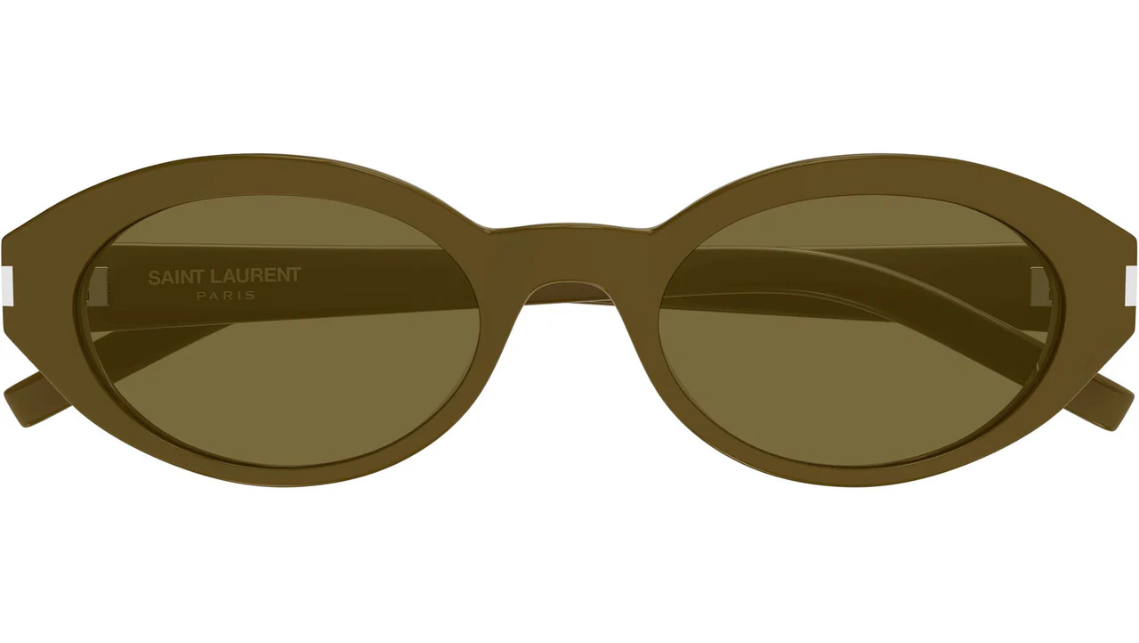 Saint Laurent SL 567 006: 1961'den bu yana özgürlüğün ve modernliğin sembolü Saint Laurent, Corner Angle koleksiyonunun SL 567 modelinde 006 renk koduyla koleksiyonun en toprak tonlu ve en organik kombinasyonunu sunar. Parlak likorice kahverenginin derin ve sıcak tonu ile haki lensin zeytin-yeşili sofistike nüansı bir araya geldiğinde tam ton sürekliliği içinde oval formun yumuşak silueti Saint Laurent'in doğa ile lüksü buluşturan en özgün ifadelerinden birini oluşturmaktadır.