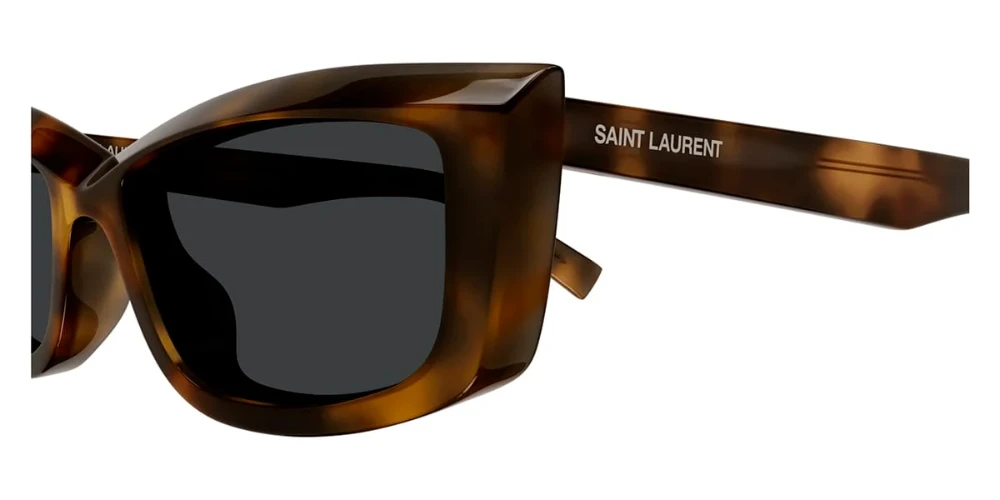 Saint Laurent SL 658 002 Havana Siyah Kadın Güneş Gözlüğü, markanın keskin hatlı, modern cat-eye formunu havana desenle buluşturan lüks güneş gözlüğü modellerinden biridir. Çerçevede kullanılan havana tonları, siyah lenslerle kontrast oluşturarak hem klasik hem çağdaş bir görünüm sunar. Üst hatta yer alan belirgin kıvrım, göz çevresine kalkık ve dinamik bir ifade vererek feminen, şehirli bir silüet yaratır. Saint Laurent logosu, sap üzerinde zarif bir şekilde konumlandırılarak çerçeveye lüks ve seçkin bir imza ekler.