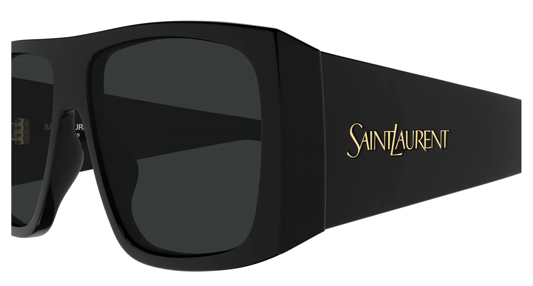 Saint Laurent SL 832 001: Parlak Siyah Flat?Top Kare Asetat Form ve Gri UV400 Naylon Lens Dengesi