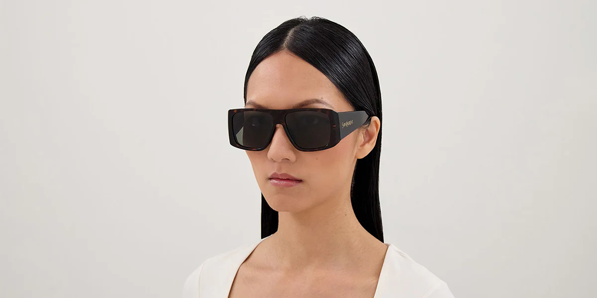 Saint Laurent SL 832 002, havana flat?top kare asetat formu ve gri UV400 cam kombinasyonuyla şehir stilinde modern, net ve yüksek moda odaklı bir görünüm arayan kadın ve erkek kullanıcılar için güçlü bir lüks güneş gözlüğü seçeneğidir. 57?15 ekartman, kalın asetat gövde ve kare form, özellikle orta?geniş yüz tiplerinde yüzü çerçeveleyen, fotoğraf ve sahne kullanımlarında da güçlü duran bir siluet sunarken; solid gri camlar gün ışığında parlaklığı kırıp renk algısını çok bozmadan göz konforu sağlar.