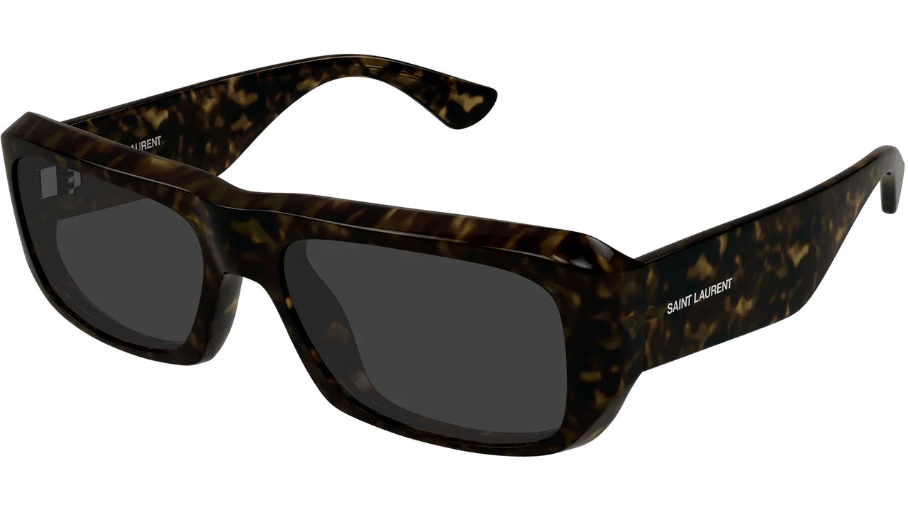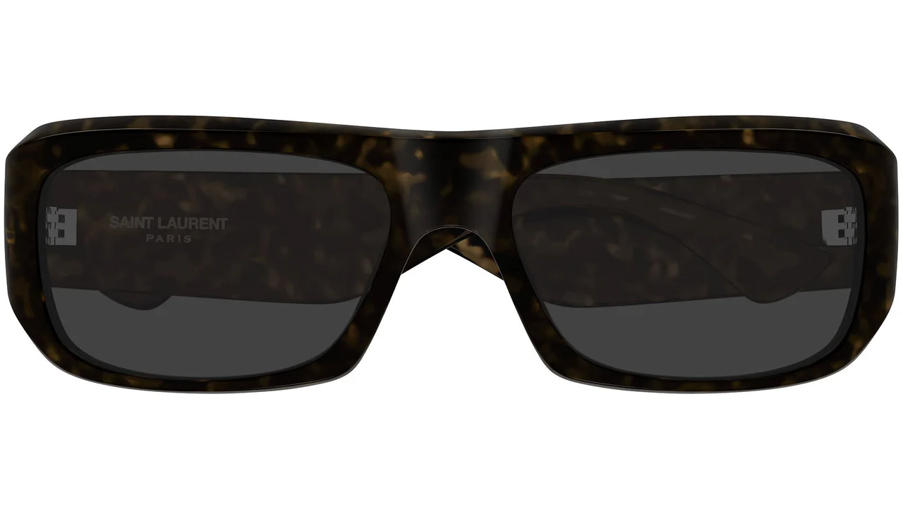 Saint Laurent SL 869 002: 1961'den bu yana özgürlüğün ve modernliğin sembolü Saint Laurent, SL Logo koleksiyonunun SL 869 modelinde 002 renk koduyla koleksiyonun en organik ve en sıcak maskülen kombinasyonunu sunar. Koyu havana bio-enjeksiyon reçinenin derin leopar desenli tortoise yapısı ile katı gri lensin soğuk nötrlüğü bir araya geldiğinde kalın dikdörtgen formun maskülen profili Saint Laurent'in runway mirasını en doğal ve en güçlü biçimiyle yansıtmaktadır.
