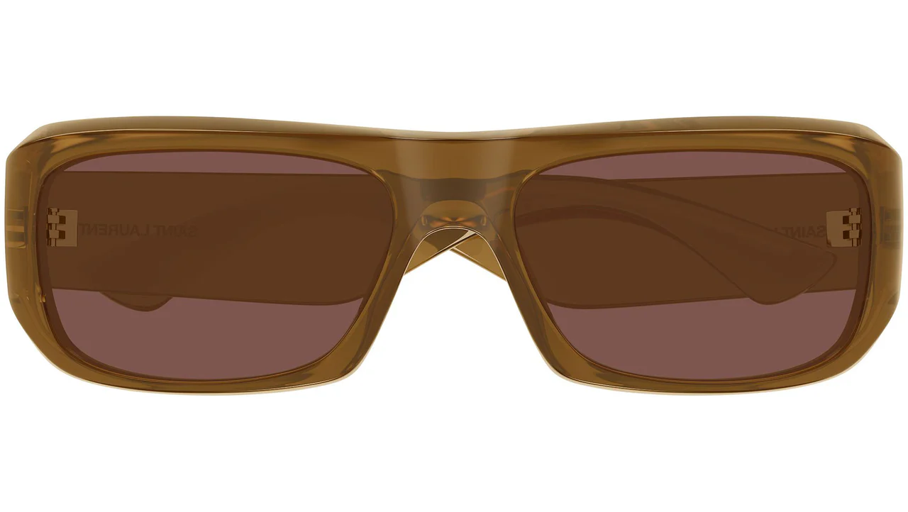 Saint Laurent SL 869 004: 1961'den bu yana özgürlüğün ve modernliğin sembolü Saint Laurent, SL Logo koleksiyonunun SL 869 modelinde 004 renk koduyla koleksiyonun en sıcak ve en organik kombinasyonunu sunar. Şeffaf cognac kahverengi bio-enjeksiyon reçinenin güneş ışığını içinden geçiren yarı saydam yapısı ile katı kahverengi lensin derin sıcaklığı bir araya geldiğinde şakaklardaki altın "SAINT LAURENT" yazısının zarif vurgusuyla bu tam ton sürekliliği Saint Laurent'in en rafine maskülen ifadelerinden birine dönüşmektedir.