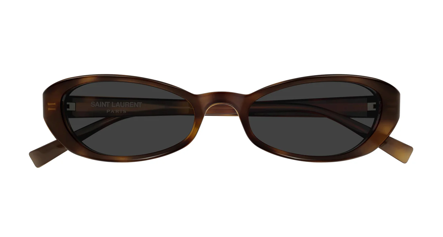 Saint Laurent SL 871 004, havana asetat çerçevesiyle oval formda tasarlanmış, Sue serisinin zarif bir kadın güneş gözlüğüdür. 51 mm ölçüleriyle hassas ve ince detaylarla yapılmış çerçeve, UV400 korumalı gri camlarla net görüş ve göz rahatlığı verir. İtalya yapımı bu model, minimal ama sofistike bir stil sunarak günlük ve şık kullanım için idealdir.