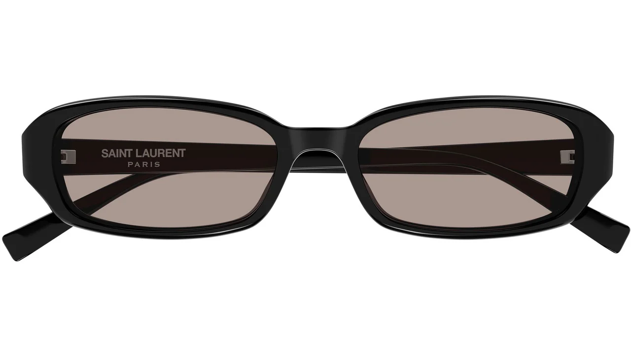 Saint Laurent SL 872 ERIN 002: ERIN koleksiyonu, Saint Laurent'in 90'lara duyduğu nostaljiyi çağdaş bir avant-garde duyarlılıkla yeniden yorumlamaktadır. 002 kombinasyonunda katı siyahın kararlı ve sofistike duruşu, açık kahverengi lensin beklenmedik sıcaklığıyla buluşarak ERIN koleksiyonunun en özgün ve en çarpıcı ton zıtlığını yaratmaktadır.