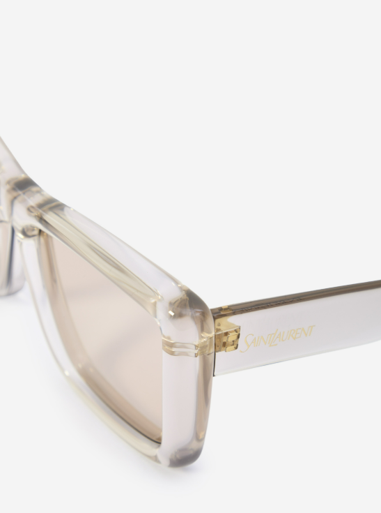 Teknik Tasarım ve Ölçüler SL 900 HOWL, oversize kare siluetiyle dikkat çeken tam kenarlı (full-rim) bir enjeksiyon plastik modeldir. Cam genişliği 61 mm, köprü genişliği 17 mm ve şakak uzunluğu 145 mm olarak tasarlanan bu model, orta ve geniş yüz hatlarına güçlü ve çarpıcı bir çerçeve sunar. Şeffaf krem tonu çerçeve, ışığı kırarak her açıdan farklı bir derinlik sunar. Gravürlü şakaklar markanın ikonik Saint Laurent yazı logosunu her bakışta yansıtır. Retro ilhamlı oversize formu ile modern hacim anlayışını buluşturan bu model, %100 UVA/UVB koruması sunar.