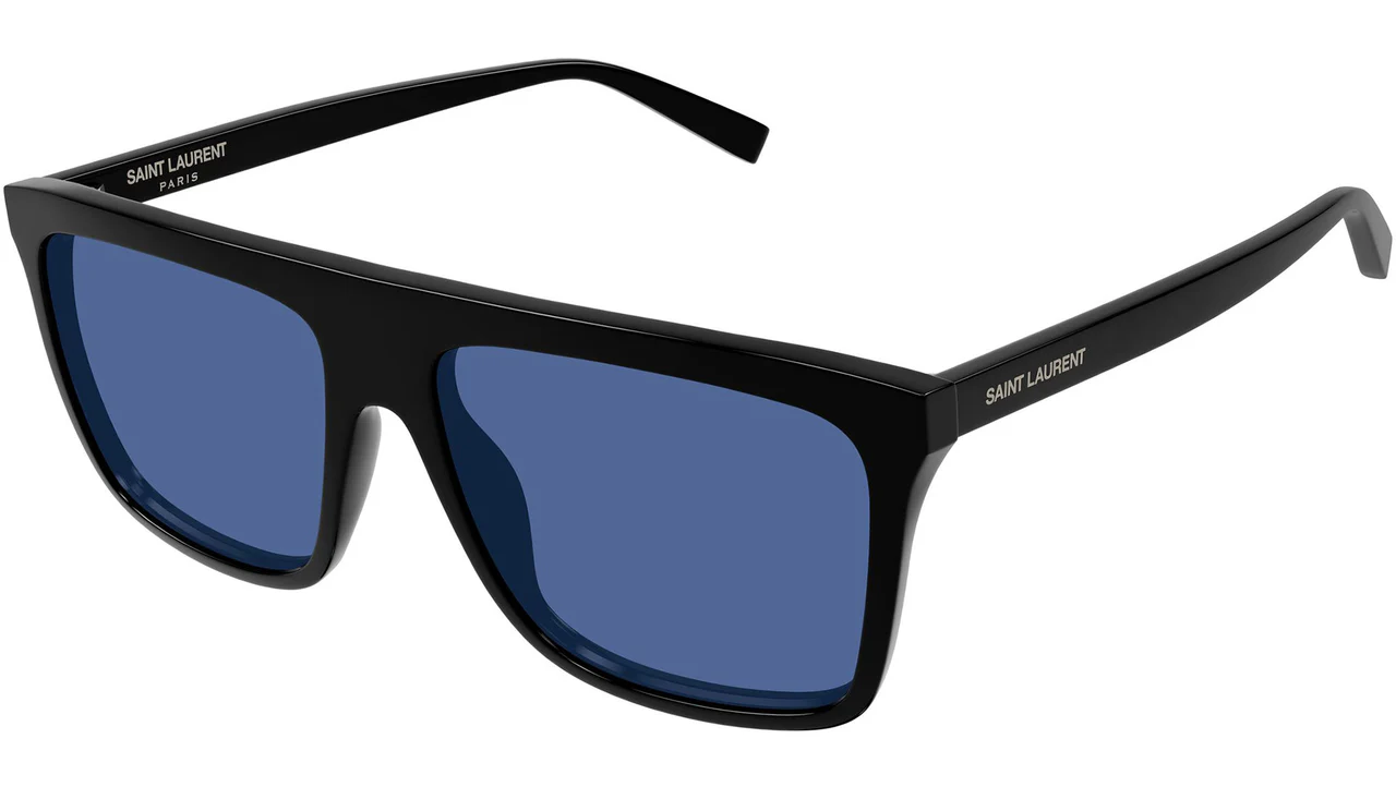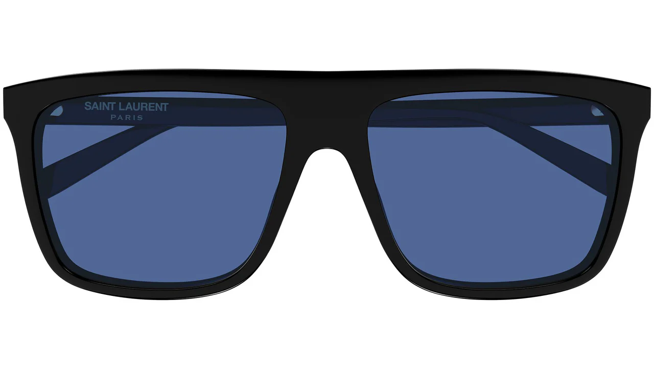 Saint Laurent SL 904 002: Fransız moda evi Saint Laurent'in modern ve çevre dostu tasarım vizyonunu yansıtan bu model, 002 renk koduyla parlak siyahın ve canlı kraliyet mavisinin çarpıcı uyumunu sunar. Klasik dikdörtgen (rectangle) formu, markanın imza niteliğindeki minimalist ve keskin hatlarıyla birleşerek yüze güçlü, sofistike bir karakter katar. Sap kısımlarında yer alan lazer işlemeli "Saint Laurent Paris" logosu, markanın zamansız lüks anlayışını vurgulayan rafine bir detaydır. Teknik Tasarım ve Ölçüler