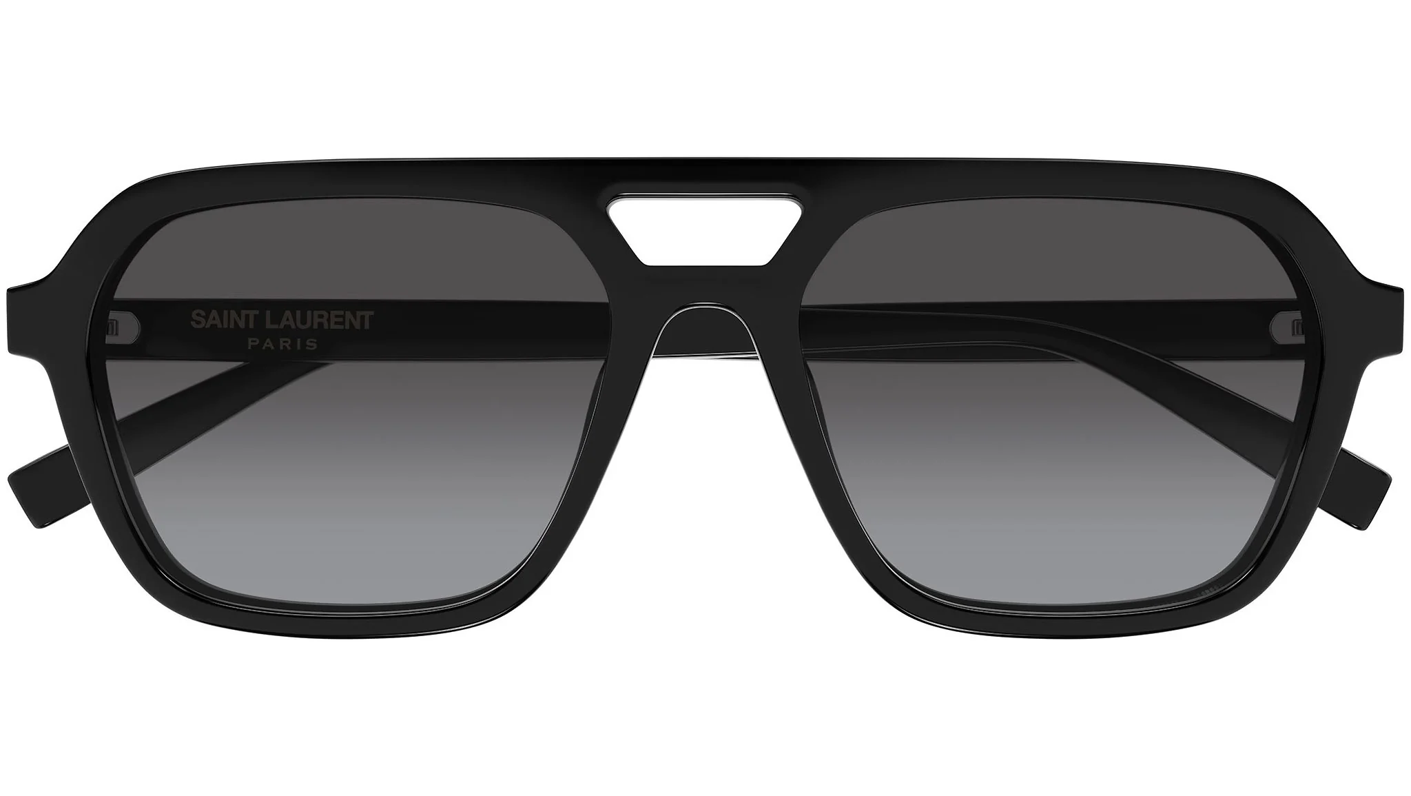 Teknik Tasarım ve Ölçüler SL 905, tam kenarlı navigator formunun altıgen köşeli yorumuyla koleksiyonun en karakteristik siluetlerinden birini sunar. Çift köprü yapısının cut-out detayı modele teknik ve maskülen bir derinlik katarken 55 mm cam genişliği, 17 mm köprü ve 145 mm şakak uzunluğuyla orta ve geniş yüz yapılarına mükemmel oturur. Şakaklar üzerindeki "SAINT LAURENT" gümüş yazısı markanın imzasını taşır. Japonya'da Kering Group atölyelerinde üretilen bu model, Saint Laurent'in titiz kalite standartlarını yansıtır.