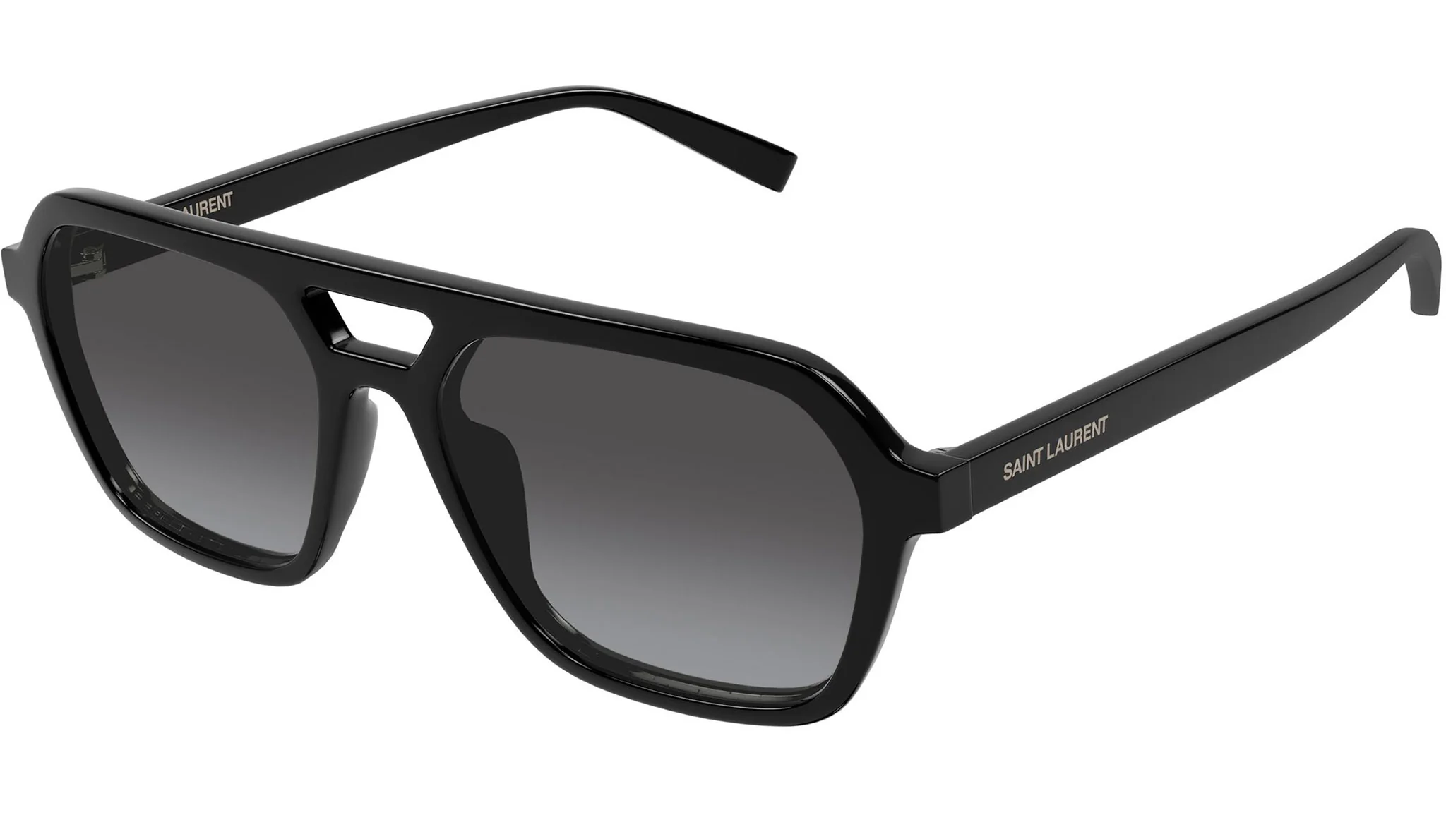 Saint Laurent SL 905 002: SL Logo koleksiyonunun en güçlü erkek ifadelerinden biri olan SL 905, klasik aviator mirasını çift köprü ve altıgen köşeli navigator formuyla yeniden yorumlamaktadır. Parlak siyah geri dönüştürülmüş asetatın kalın ve kararlı yapısı, gri degrade lensin sofistike geçişiyle buluştuğunda Saint Laurent'in rock'n'roll ruhunu taşıyan zamansız bir güneş gözlüğü ortaya çıkmaktadır.