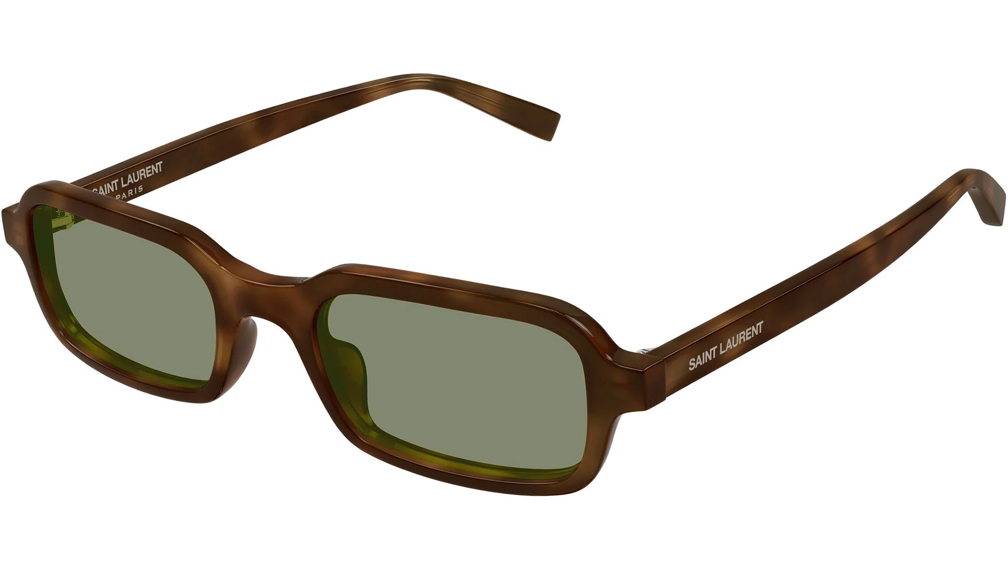 Saint Laurent SL 908 003: SL Logo koleksiyonunun havana/yeşil kombinasyonu, SL 908'in en cesur ve en karakteristik yorumunu sunar. Havana asetatın sıcak tortoise tonuyla katı yeşil lensin doğal enerjisinin buluşması, modeli minimalist dikdörtgen formun ötesinde güçlü bir stil ifadesine taşımaktadır. Geri dönüştürülmüş asetat tercihiyle lüksü sürdürülebilirlikle harmanlayan bu model, çevreye duyarlı bir zarafet anlayışını temsil eder.