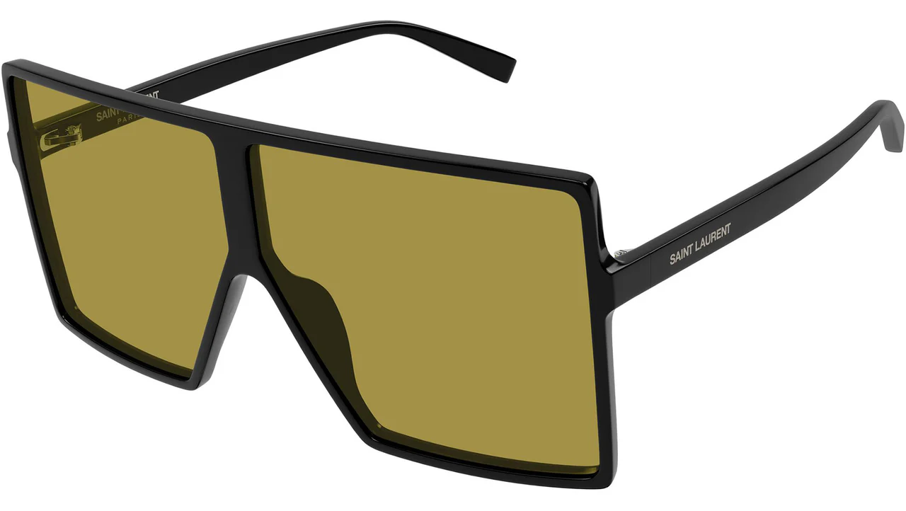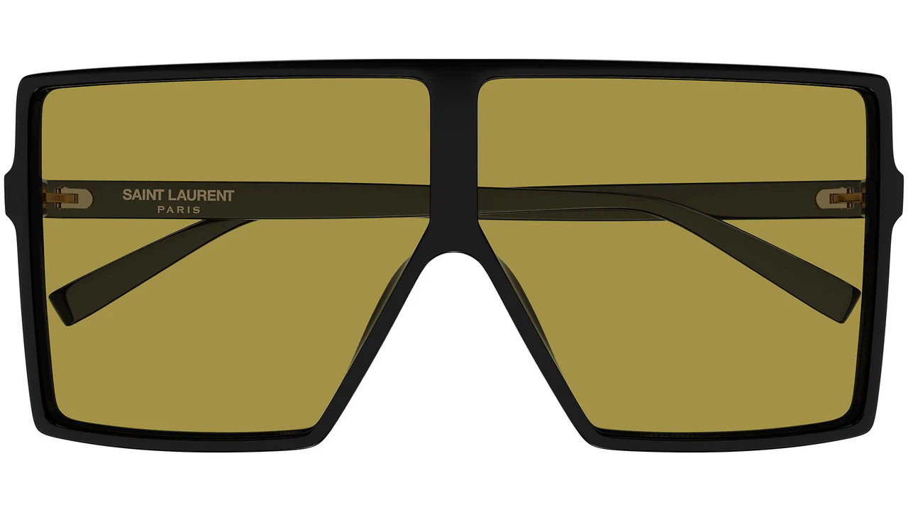 Saint Laurent SL 909 BETTY S 002: Fransız moda evinin sürdürülebilir lüksü cesur bir estetikle birleştirdiği bu model, 002 renk koduyla siyahın asaletini ve "Solid Nicotine" (Nikotin Sarısı) lenslerin retro-fütüristik havasını sunar. İsmini markanın efsanevi ilham perilerinden alan "BETTY S" serisi, dikdörtgen (rectangle) formunu devasa bir kalkan (shield) etkisiyle yeniden yorumlayan bu kadın güneş gözlüğü, Anthony Vaccarello'nun Saint Laurent için kurguladığı keskin ve ödün vermeyen moda anlayışını yansıtır. Teknik Tasarım ve Ölçüler