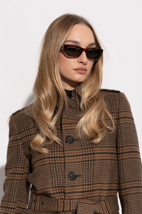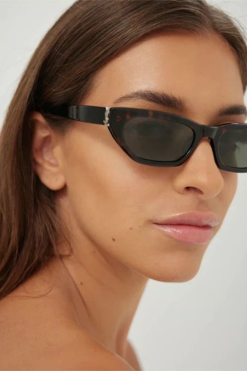 Saint Laurent SL M126 003 Havana Yeşil Kadın Güneş Gözlüğü, markanın dar ve uzatılmış cat-eye formuyla ikonik silüetlerini modern bir yorumla birleştiren lüks güneş gözlüğü modellerinden biridir. Parlak koyu havana çerçeve ve yeşil tonlu cam kombinasyonu, hem retro hem çağdaş bir etki yaratarak şehir stiline sofistike bir dokunuş katar. İnce ve çekik form, yüz hatlarını yukarı doğru taşıyan feminen bir ifade oluşturur. Sap üzerindeki metalik YSL monogram menteşe detayı, modeli Saint Laurent’in imza lüks tasarım kodlarıyla buluşturur.