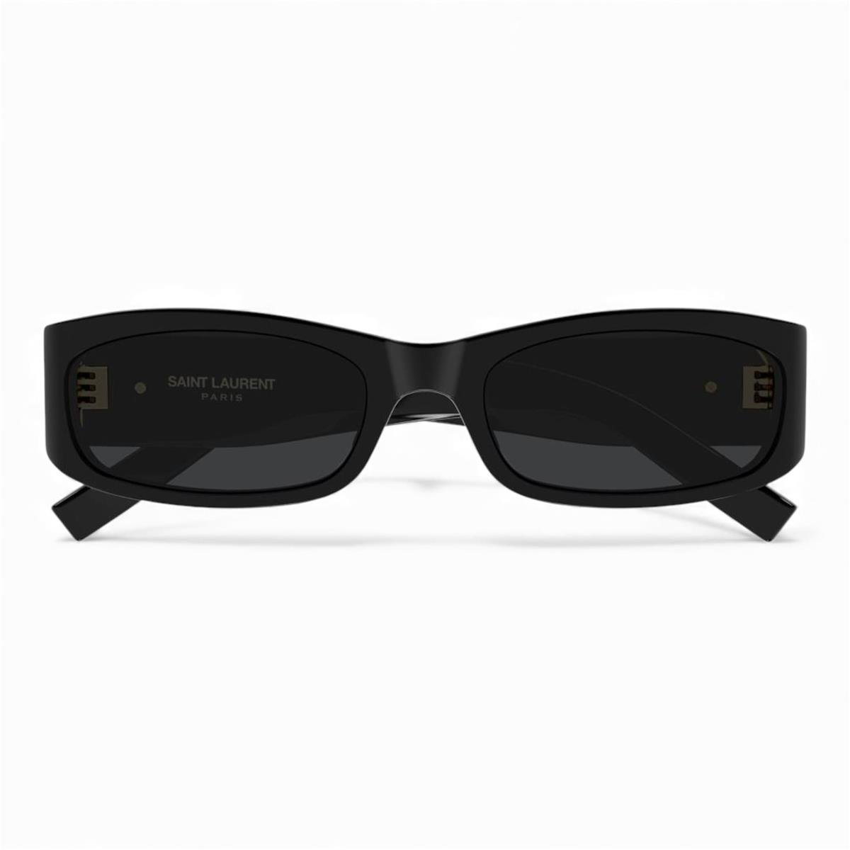 SL M152 001, Monogram serisinde yer alan, uzatılmış dikdörtgen formu ve sade çizgileriyle modern bir unisex güneş gözlüğüdür. Parlak siyah asetat çerçeve ve solid siyah bio?nylon camlar, minimal ama güçlü bir görünüm sunarak hem kadın hem erkek kullanıcılar için şehir stiline keskin bir karakter katar. Geniş saplara yerleştirilmiş Cassandre YSL logosu, çerçevenin yan profilinde ikonik ve zarif bir monogram vurgusu oluşturur.