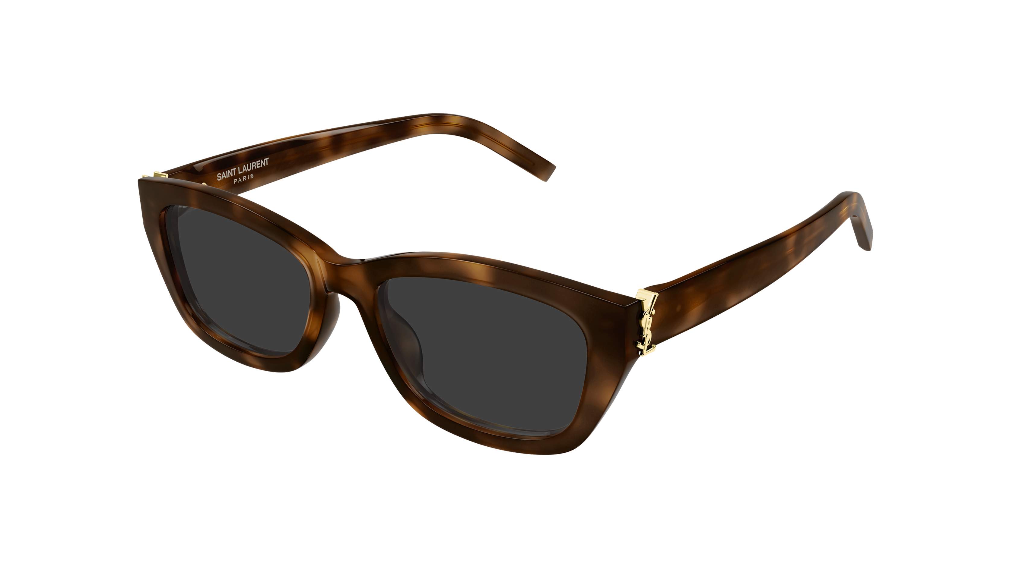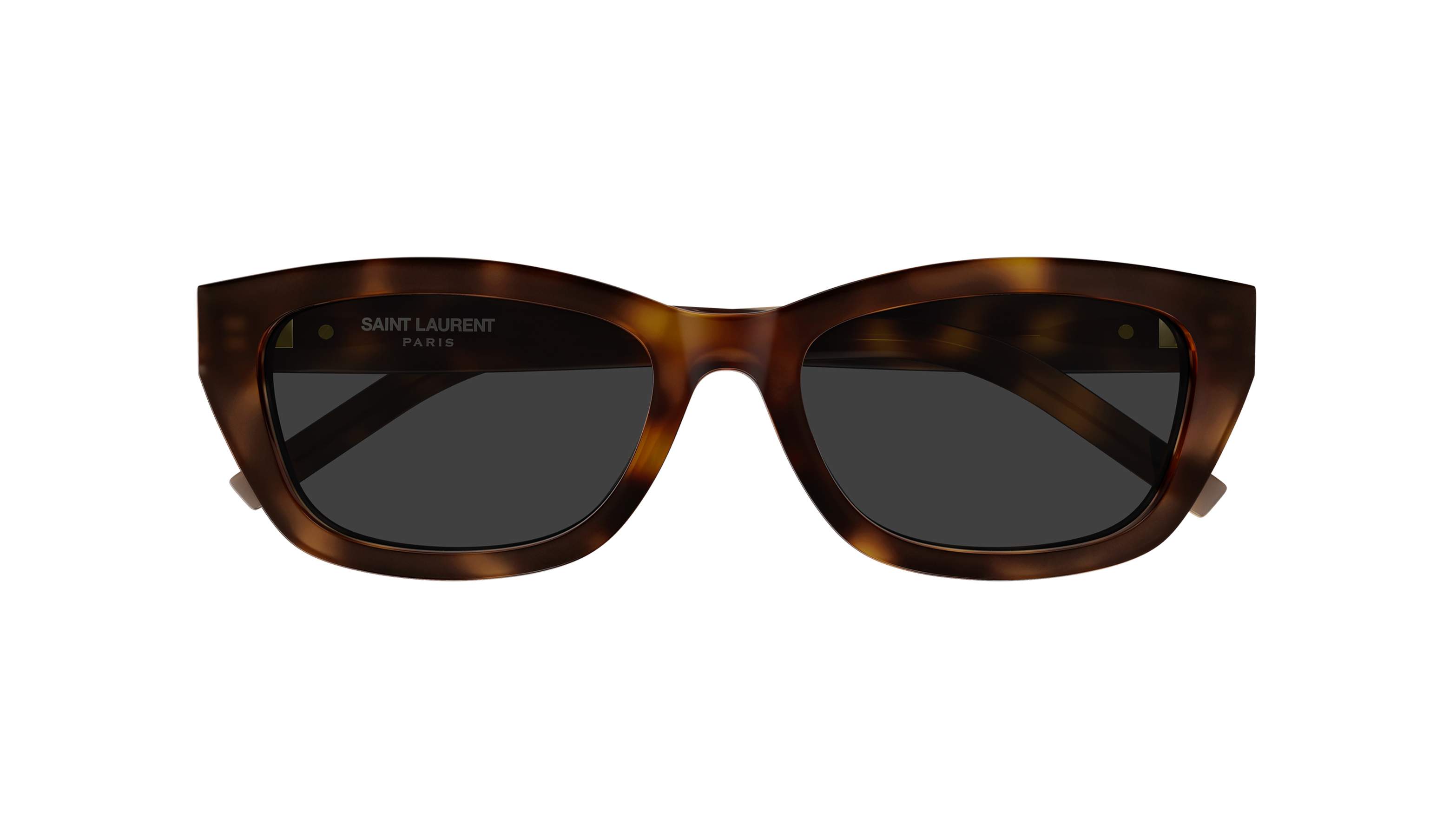 Saint Laurent SL M153 003 Havana Gri Kadın güneş gözlüğü, Linea Monogram koleksiyonuna ait, dar siluete sahip yumuşak cat?eye formuyla feminen ve modern bir lüks güneş gözlüğüdür. Parlak koyu havana asetat çerçeve ile gri lenslerin birleşimi, klasik tortoise dokusunu sofistike gri tonla eşleştirerek gündelik şehir stilinden akşam kombinlerine kadar geniş bir kullanım alanı sunar. İnce ve dar cat?eye form, bakışları yukarı doğru çeken siluetiyle göz çevresine lifting etkisi vererek feminen ve zarif bir ifade oluşturur. Her iki sapta yer alan orta boy monogram YSL menteşe detayı, çerçevenin yan profilini zenginleştiren ikonik bir Saint Laurent imzası niteliğindedir.