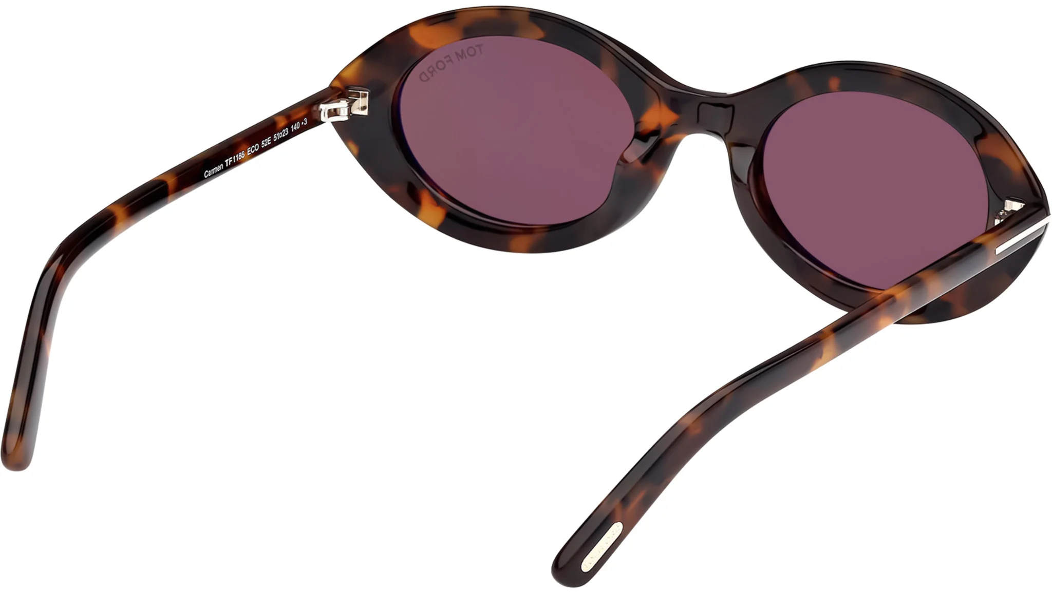 Tom Ford TF1186 52E Carmen, köşeli/yuvarlatılmış geometrik formda, tam çerçeveli kadın güneş gözlüğüdür. Çerçeve rengi koyu havana (dark havana / leopar kahverengi) olarak listelenmiş olup, belirgin üst hat ve hafif yukarı kalkık köşeleriyle sofistike bir kedi gözü–geometrik hibrit siluet sunar. Model, 51 mm cam genişliği, 23 mm burun köprüsü ve 140 mm sap uzunluğu ile ölçülendirilmiştir. Bu ölçüler, küçük ve orta boy kadın yüz tiplerinde dengeli bir oturuş ve yüzü toparlayan güçlü ama feminen bir ifade hedefler.