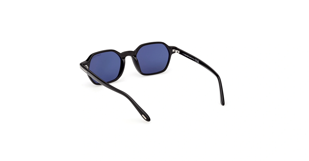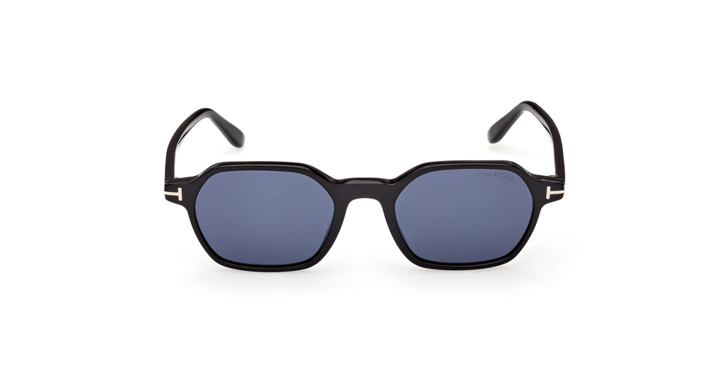 Tom Ford Joey-02 TF1301 01V: Parlak Siyah Kare Çerçeve ve Koyu Mavi Cam Uyumu