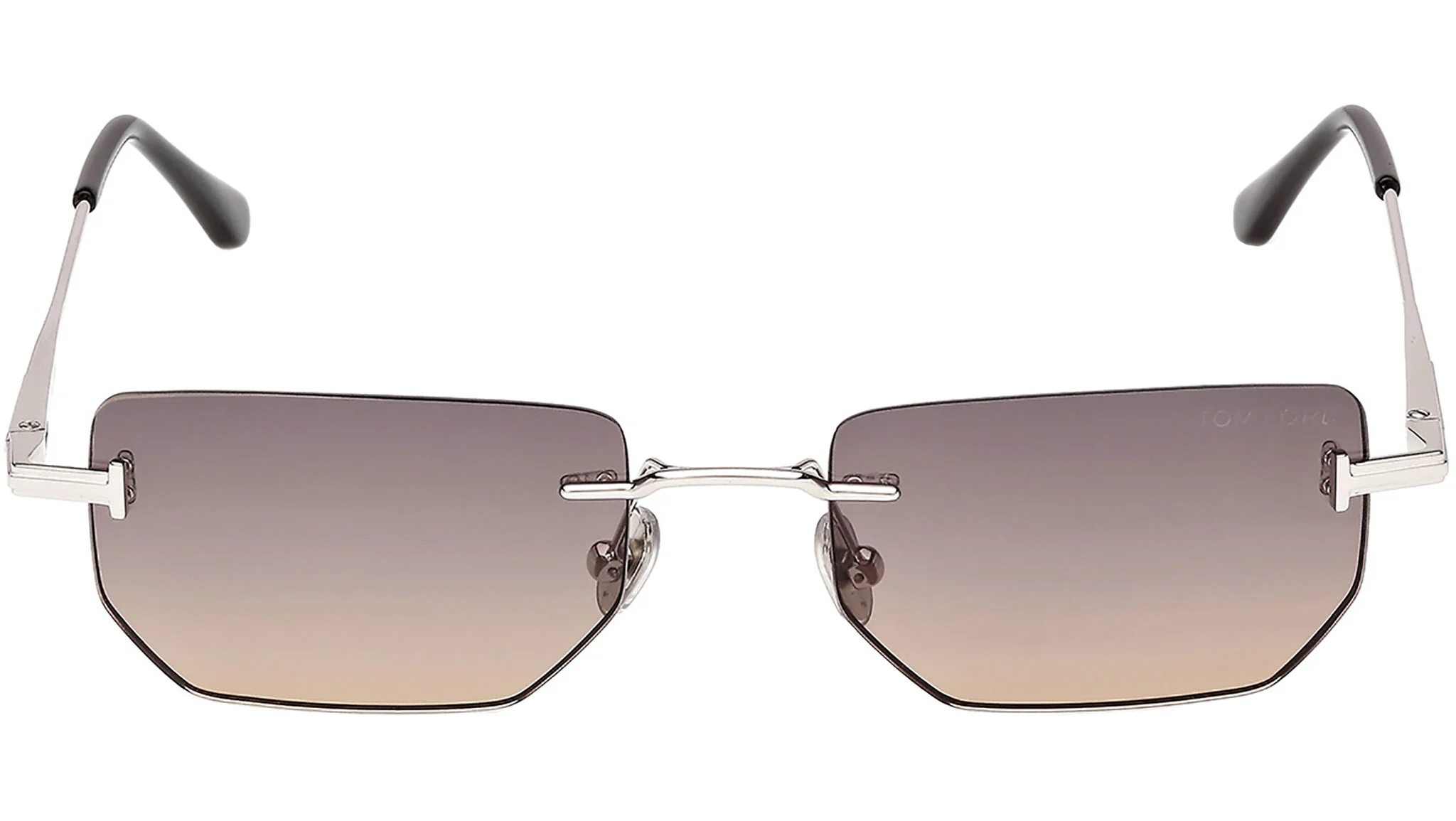 TF1355 modelinin en belirgin özelliği, camları bir arada tutan hassas üç parçalı parlak paladyum (Shiny Palladium) konstrüksiyonudur. 53 mm lens genişliği, 19 mm burun köprüsü ve 145 mm sap uzunluğu ile ideal ergonomik ölçülere sahiptir. Gözlükte kullanılan gri degrade (Gradient Smoke) organik camlar, yukarıdan gelen sert ışığı filtrelerken alt kısımdaki açık tonuyla her ortamda net bir görüş sağlar. Sapların başlangıç noktasında yer alan ikonik "T" logosu, markanın imza dokunuşunu zarif bir şekilde sergiler.