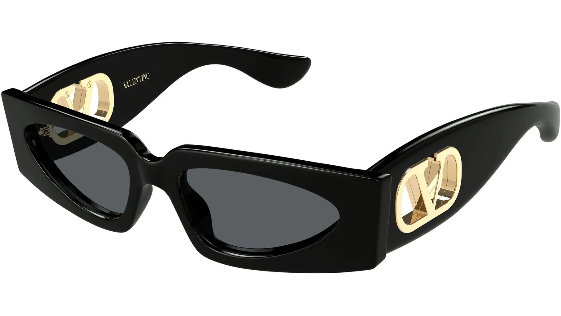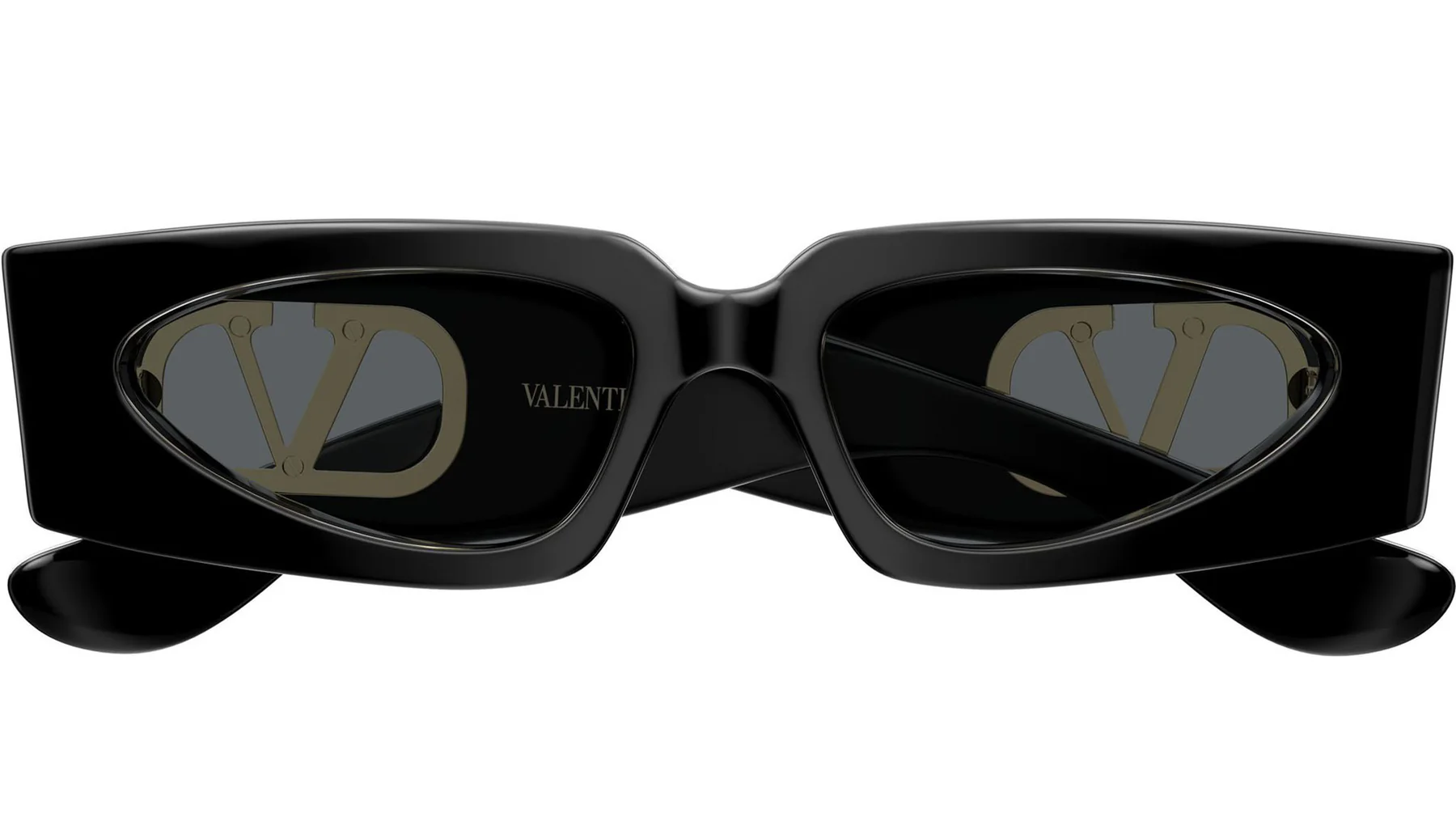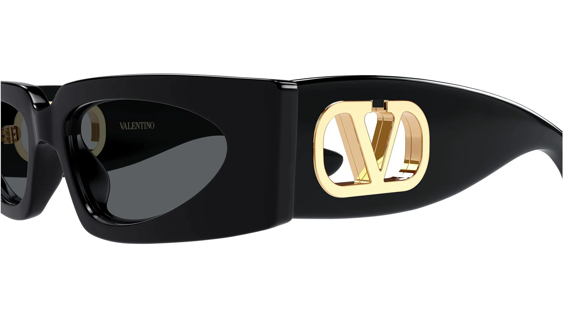 Valentino VG0001S 001: Roma'nın couture mirasını taşıyan Valentino, V Logo koleksiyonunun VG0001S modelinde 001 renk koduyla koleksiyonun en kararlı ve en saf minimalist ifadesini sunar. Parlak siyah recycled asetat dikdörtgen çerçevenin monolitik gücü ile katı gri lensin soğuk nötrlüğü bir arada Valentino'nun "sadeliğin içindeki mükemmellik" felsefesini en doğrudan ve en zamansız biçimde yansıtmaktadır — fazlasız, eksiksiz ve tavizsiz.