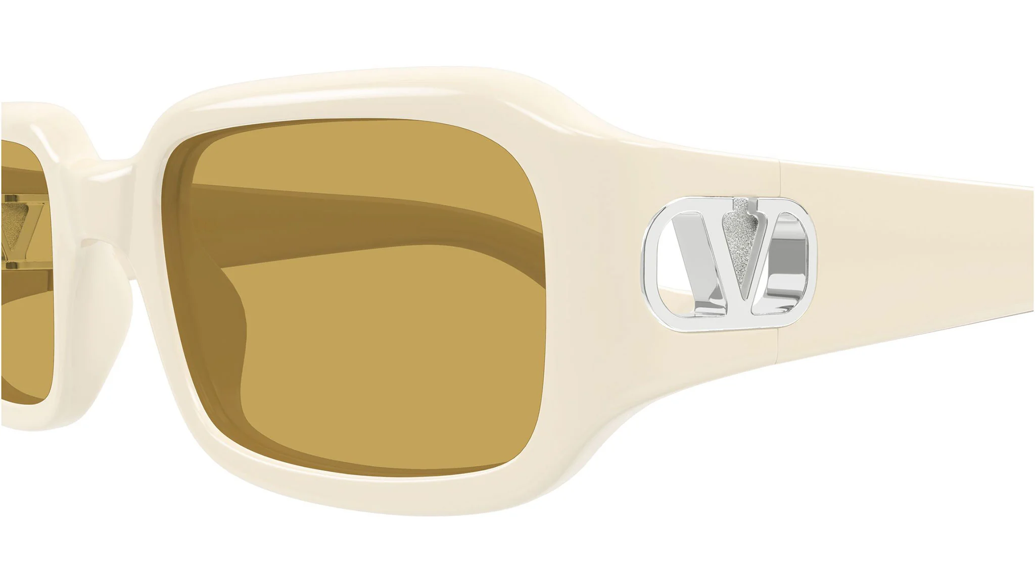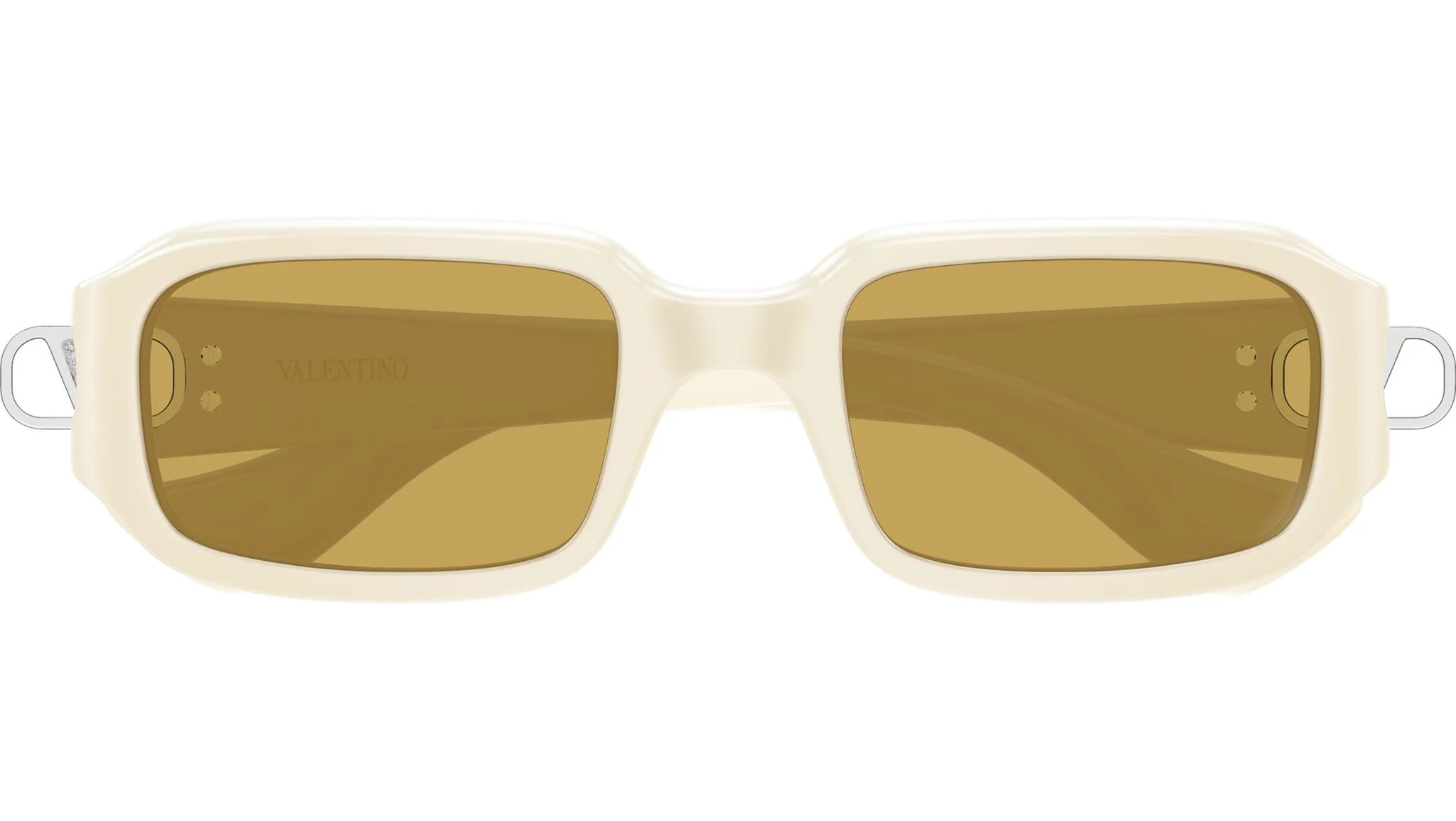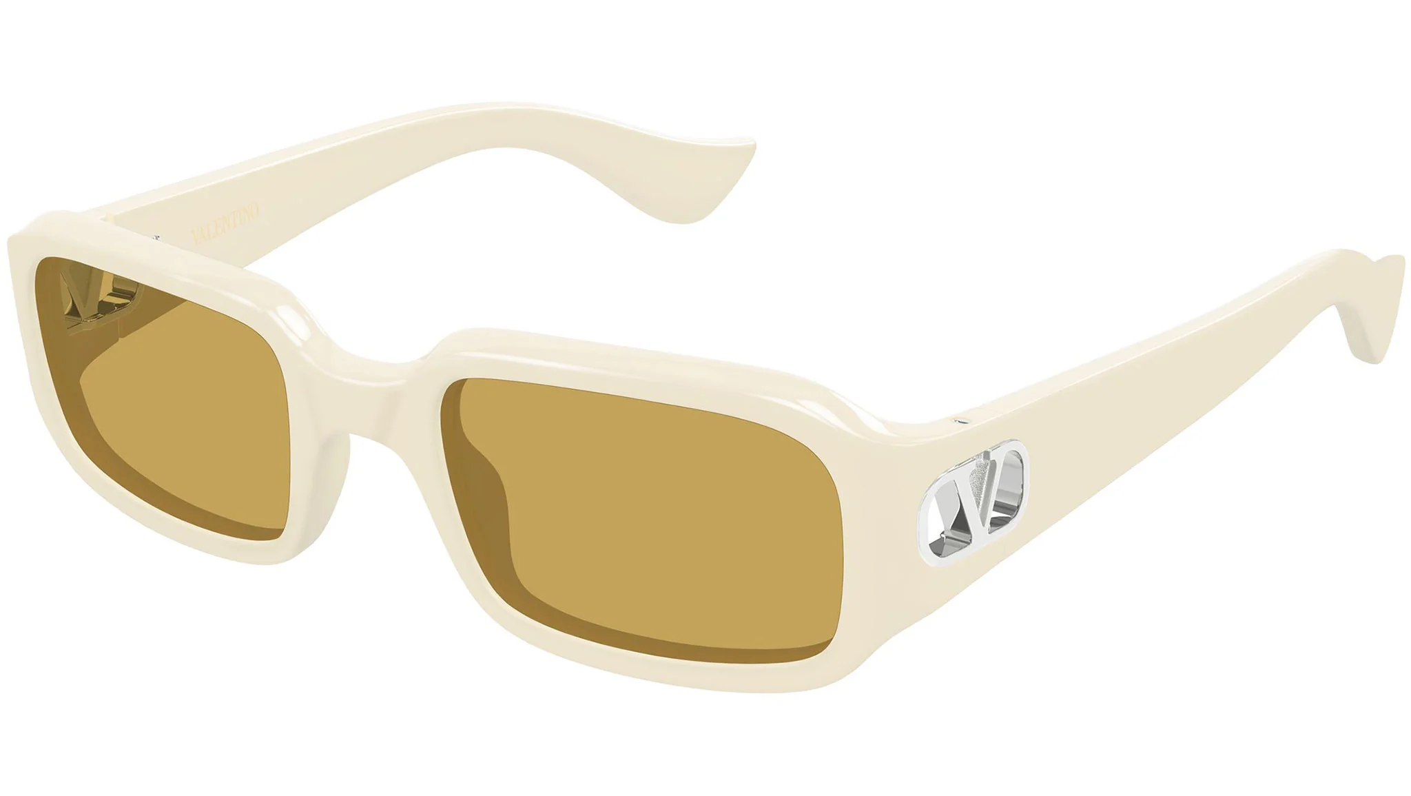 Valentino VG0016S 004: Roma'nın couture mirasını taşıyan Valentino, V Logo koleksiyonunun VG0016S modelinde 004 renk koduyla koleksiyonun en aydınlık ve en sıcak ton ifadesini sunar. Parlak fildişi bio-enjeksiyon reçinenin krem bütünlüğü ile nikotin lensin amber sıcaklığı bir araya geldiğinde şakaktaki gümüş VLogo Signature plakası bu sıcak paleti soğuk metalik bir aksanla dengeler — fildişi/nikotin/gümüş üçlüsü Valentino koleksiyonunun en sofistike tonal harmonisini oluşturmaktadır.