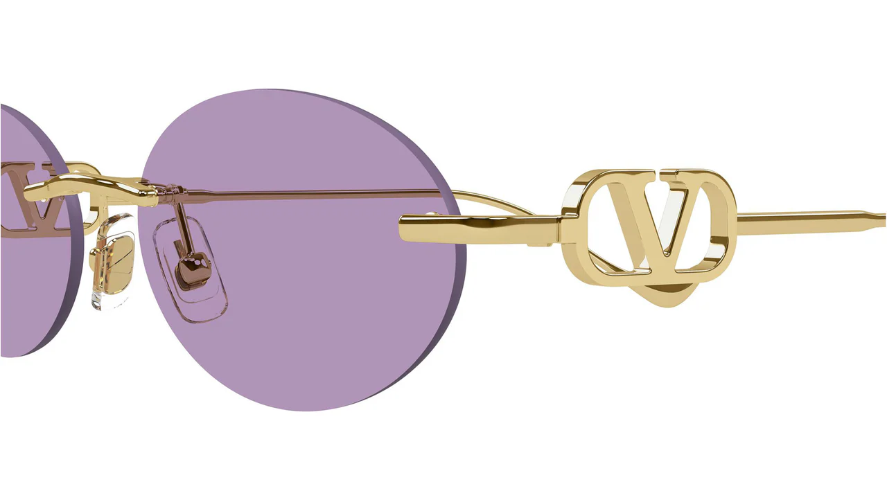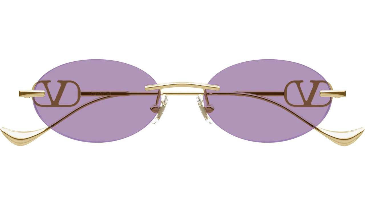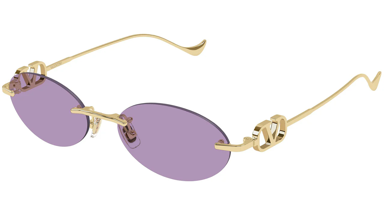 Valentino VG0032S 004: Roma'nın couture mirasını taşıyan Valentino, V Logo koleksiyonunun VG0032S modelinde endura altın metalin zarif parlaklığını geometrik formla buluşturarak koleksiyonun en sofistike metal yorumunu sunar. 004 kombinasyonunda endura altının ısıl ve rafine tonu ile katı morun cesur ve teatral derinliği bir araya geldiğinde Valentino'nun renk dili en baskın ve en couture ifadesine kavuşmaktadır.